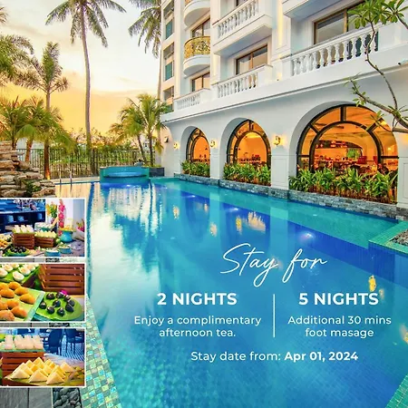 Het Grand Sunrise Palace Hoi An- A Luxury Indochine Hotel & Spa met 5 sterren ligt in het zakendistrict van Hội An, binnen 25 minuten wandelafstand van het Precious Heritage by Réhahn en beschikt over hammam en waterglijbanen. Dit hotel op 2 km afstand van de Chùa Cầu biedt uitzichten op het zwembad en een een zwembad.